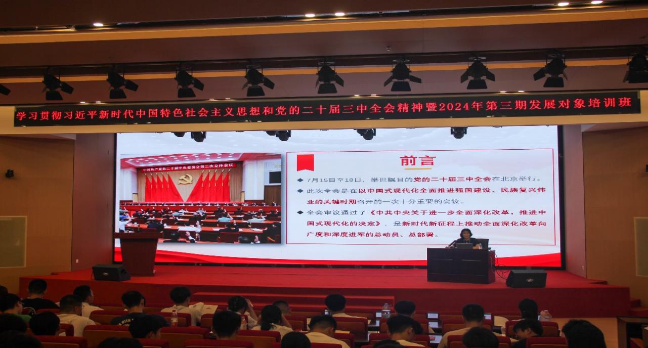 为深入学习贯彻党的二十届三中全会精神,进一步加强青年思想政治引领,引导广大青年在学思践悟中凝聚奋进力量,通用航空产业学院党总支于2024年9月4日下午在艺新楼331学术厅开展学习贯彻党的二十届三中全会精神宣讲会,会议由通用航空产业学院党总支副书记苏汉美主讲,学院第三期130余名党员发展对象参会。