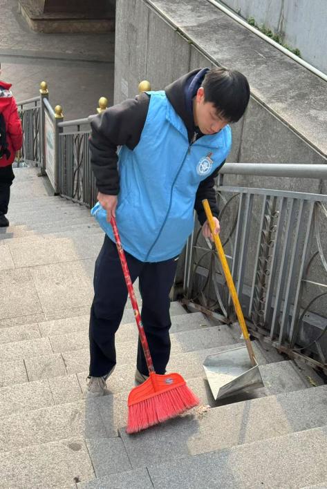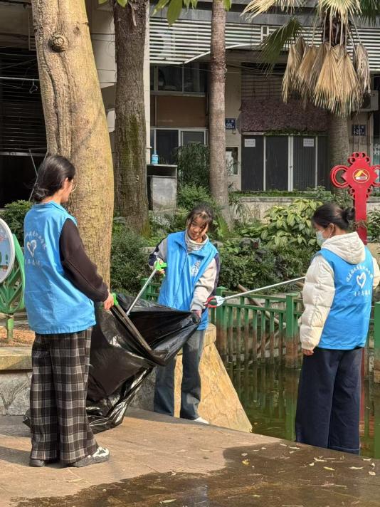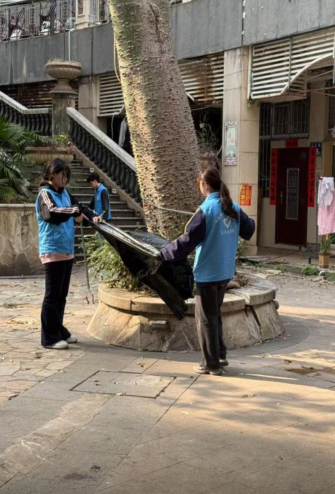 一群身着蓝色志愿服的志愿者们热情满满地开展清扫活动。他们不怕脏、不怕累,两两搭配清扫社区、清理花圃垃圾、落叶、拔除杂草,志愿者手持扫帚,认真清扫着地面的落叶和杂物,用自己的双手为社区带来整洁与清新。他们的行动,让社区环境变得更加整洁,也为社区增添了一抹温暖而亮丽的色彩。
