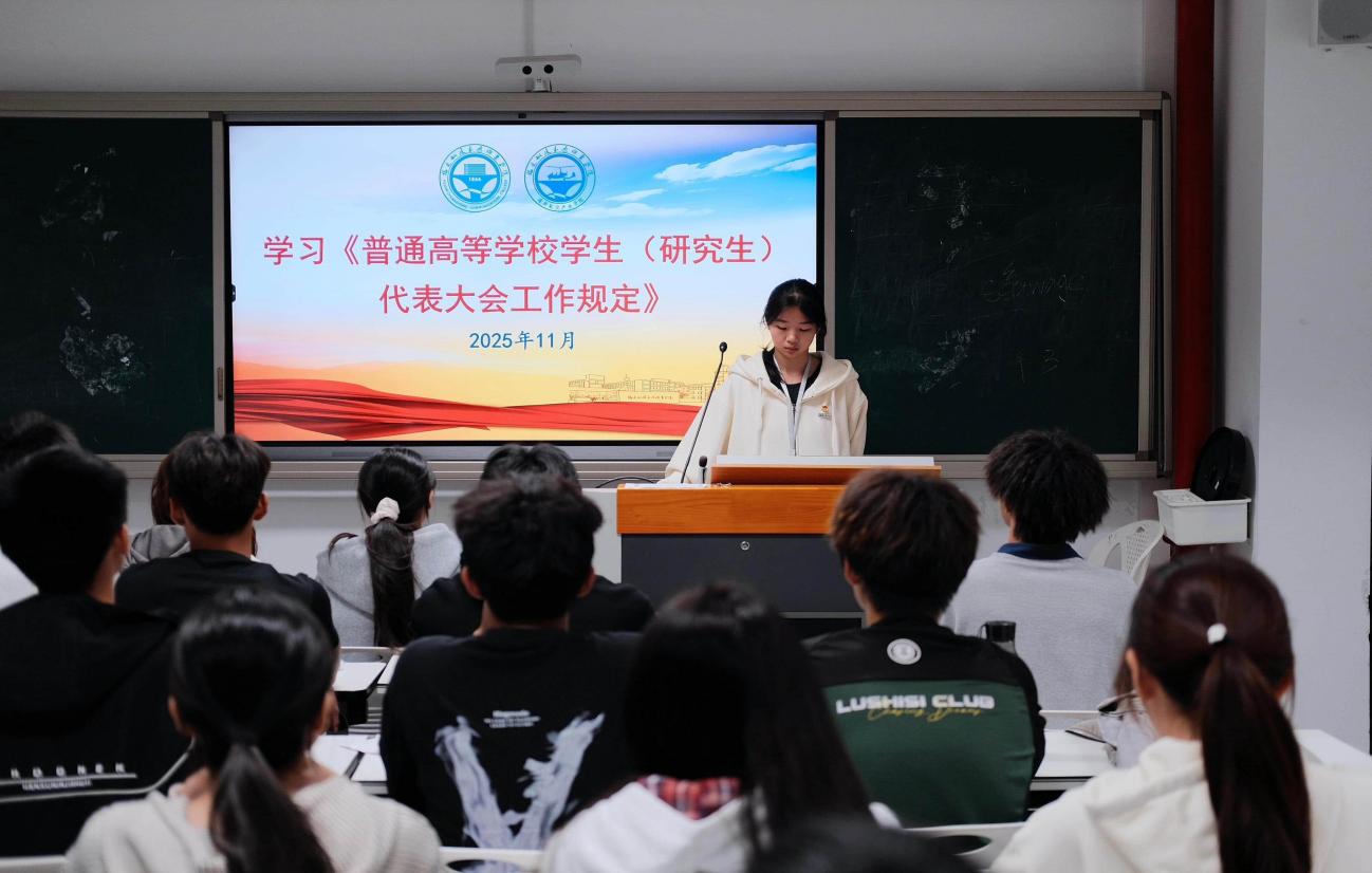 随后,学院学生会主席团成员程思祺为学员们解读《普通高等学校学生(研究生)代表大会工作规定》。该文件以民主集中制为原则,明确了学生代表大会制度是学生会组织的重要制度,集中体现了学生会组织的政治性、先进性与群众性,对保障学生民主权利、推动学生会组织健康有序发展具有重要意义。