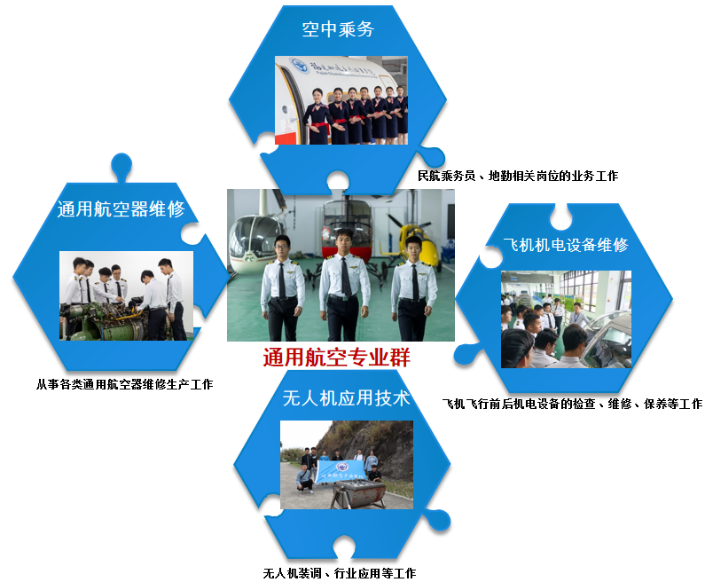 职业发展:通用航空是指从事公共航空运输以外的民用航空活动,在应急救援运输、森林防火、航拍勘探、旅游等领域都离不开通用航空,是福建省重点发展的新兴产业。福建省山地、海岛众多,通用航空市场前景广阔,将迎来飞速发展。