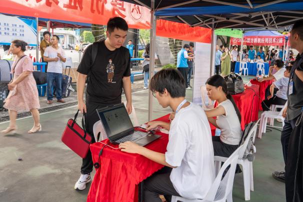 现场百余名校院两级志愿者身着统一服装,协助新生完成身份核验、宿舍引导等服务,耐心解答新生关于学业规划、生活服务等方面的疑问。