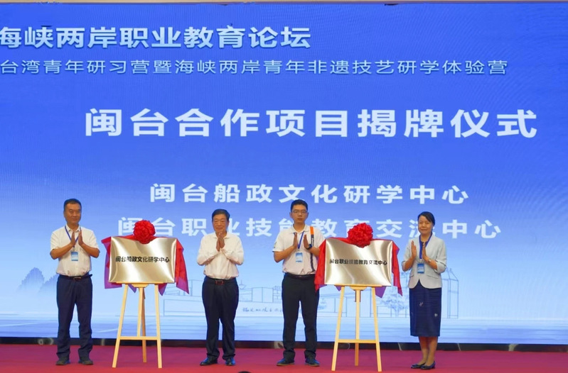 揭牌仪式上,我院“闽台船政文化研学中心”“闽台职业技能教育交流中心”成功揭牌。据悉,研学中心将整合校内外场馆资源,推动闽台青少年研学实践常态化,通过文化浸润、技艺实训与历史探寻,为深化两岸融合发展、赓续中华文脉注入青春动能。交流中心将联合闽台高校及行业企业,深化闽台高校“校校企”联合培养项目,推动师资互聘、课程共建、科研合作、技能认证互通及衔接培养,为闽台产业融合发展提供高技能人才支撑。