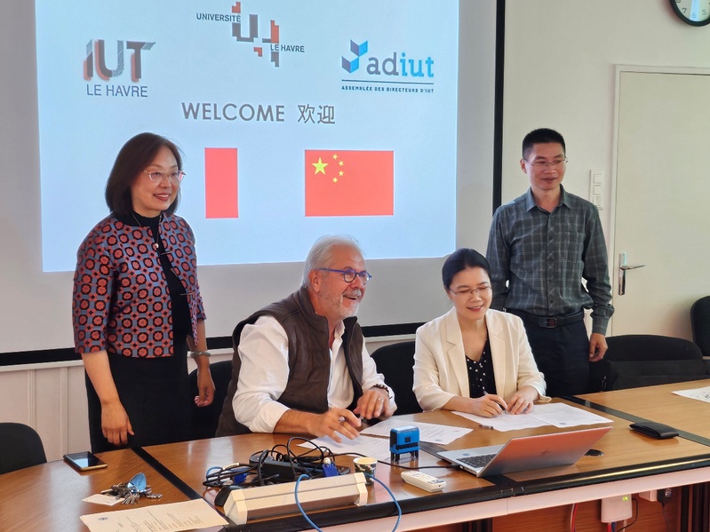 代表团与诺曼底勒阿弗尔大学校长佩德罗·拉格什·多斯桑托斯Pedro Lages dos Santos及国际发展部负责人蒂埃里·塔贝利翁Thierry TABELLION等举行会谈,双方就师生互访、教科研合作,特别在港口与海洋产业人才培养合作方面达成共识,并签署校际合作备忘录。